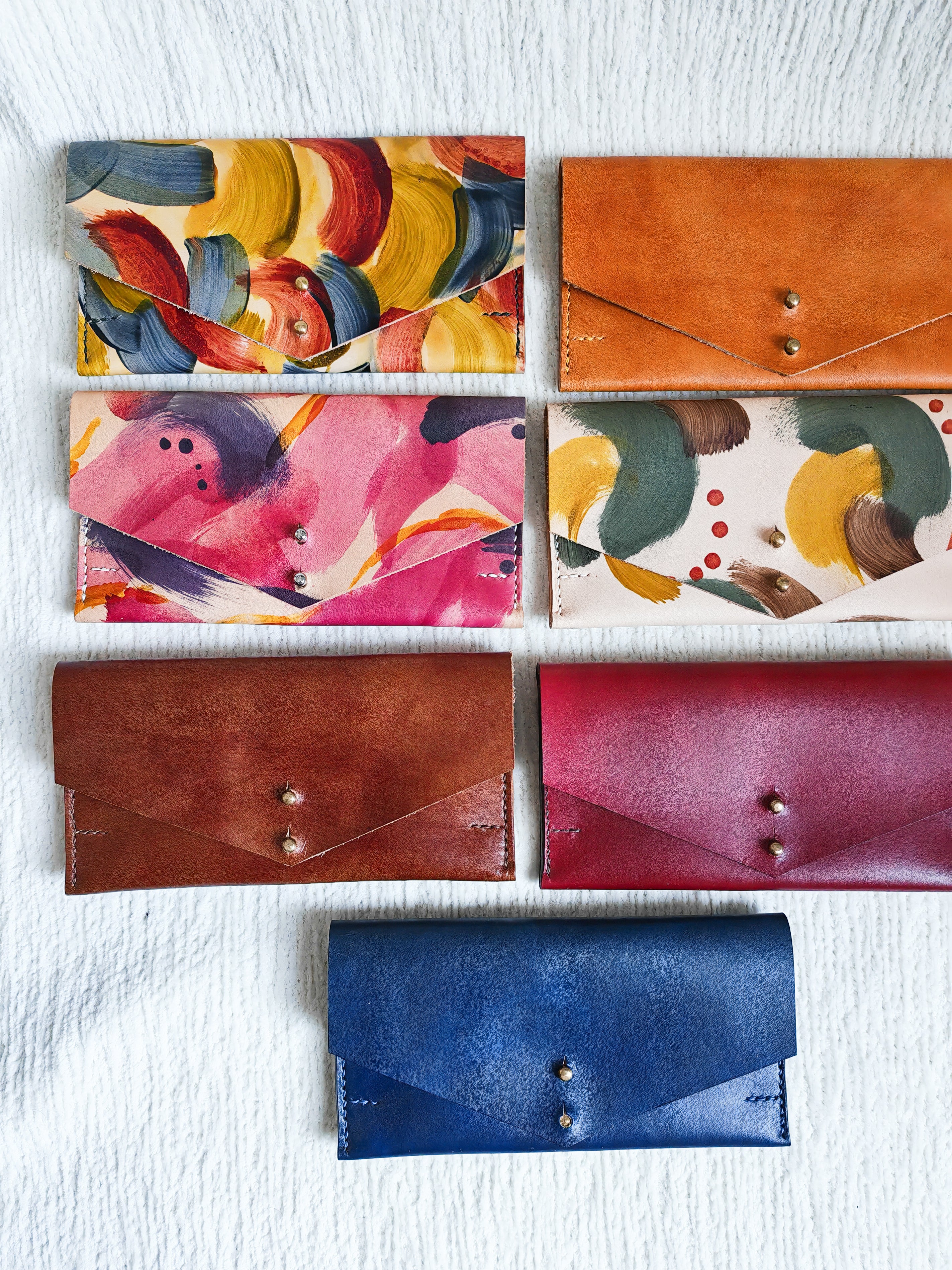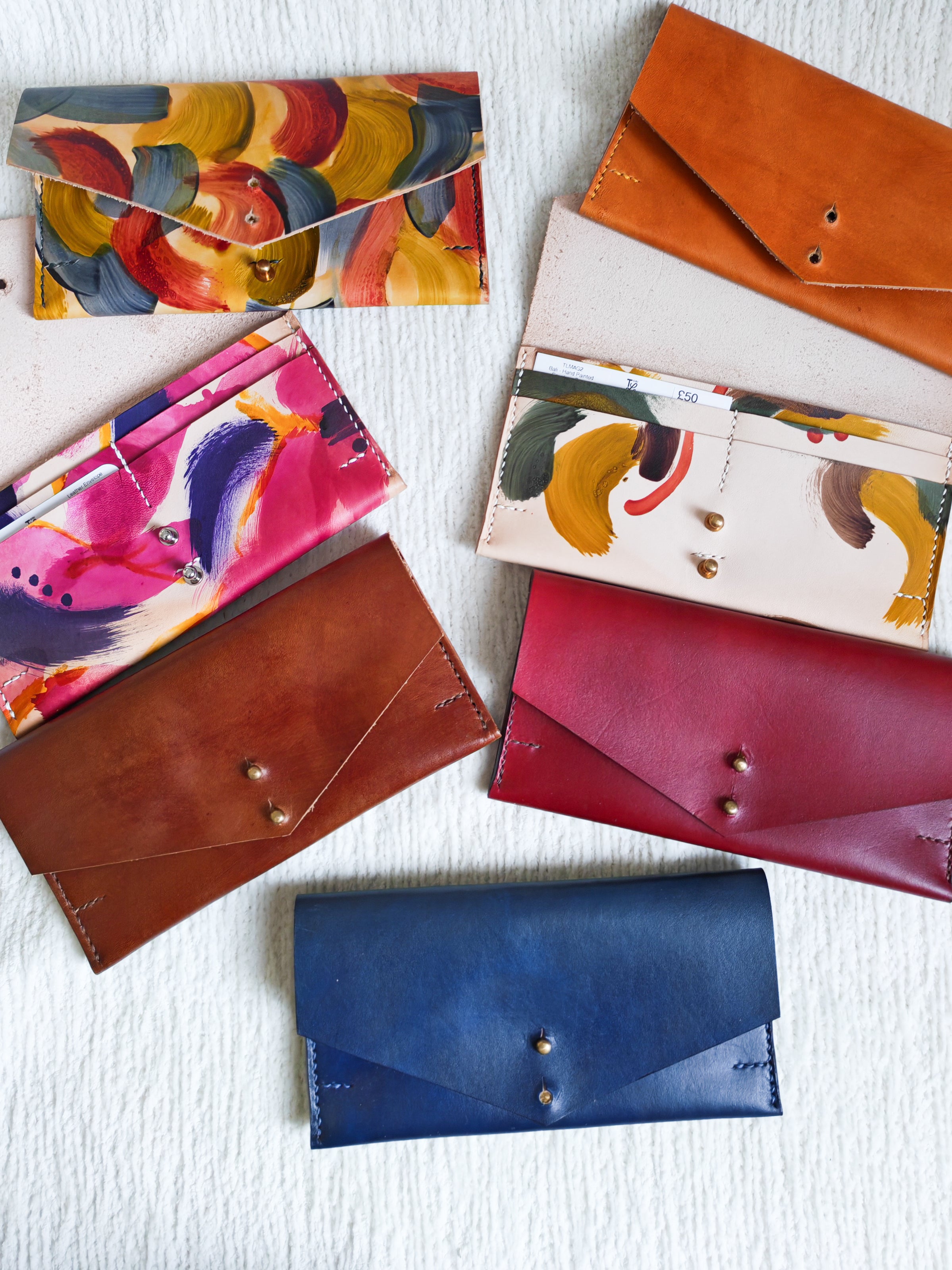 Hand painted with unique brush strokes, the Bali envelope purse is perfect for carrying the everyday essentials.