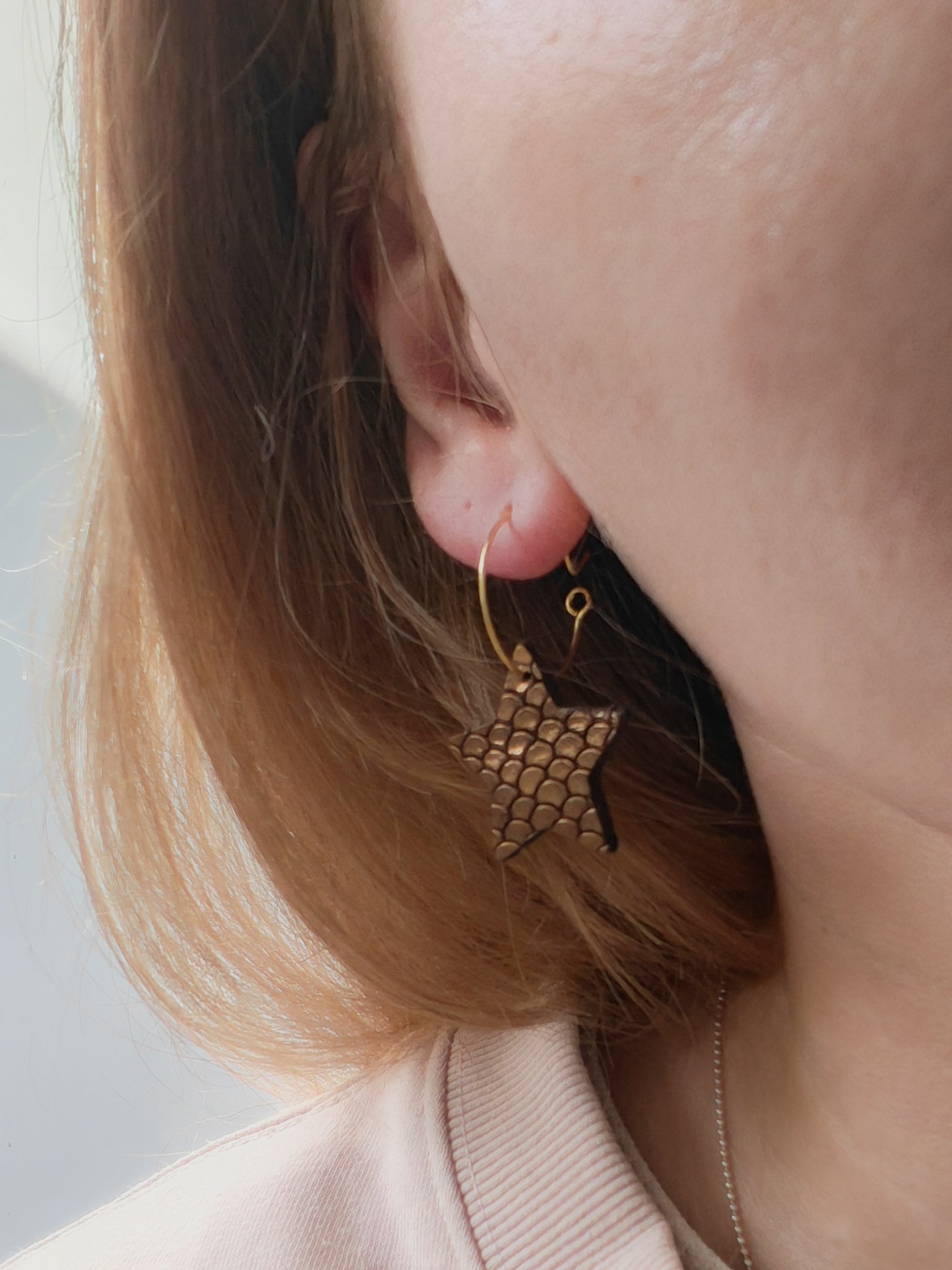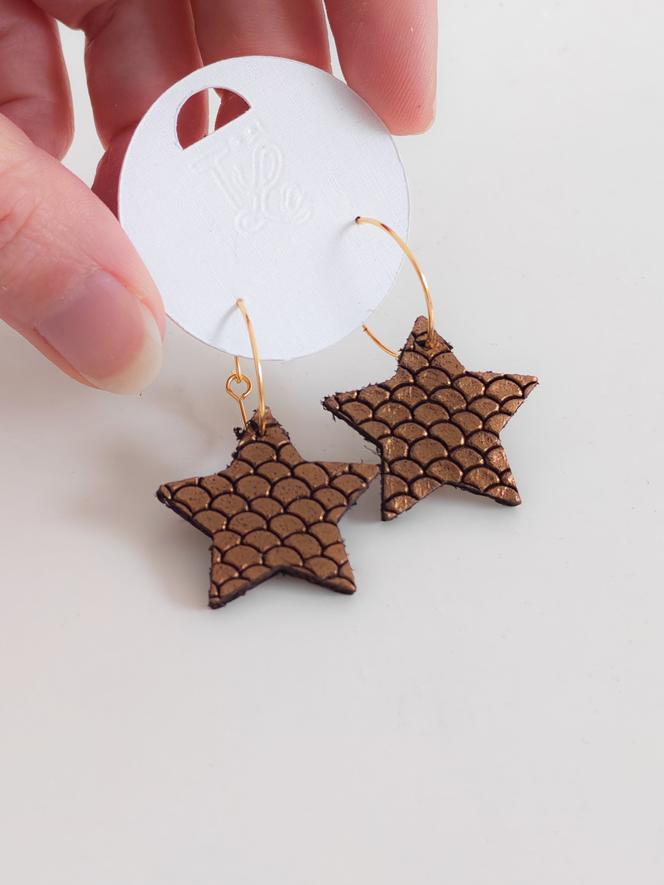 Star Hoop Earrings - Reclaimed Scale Leather