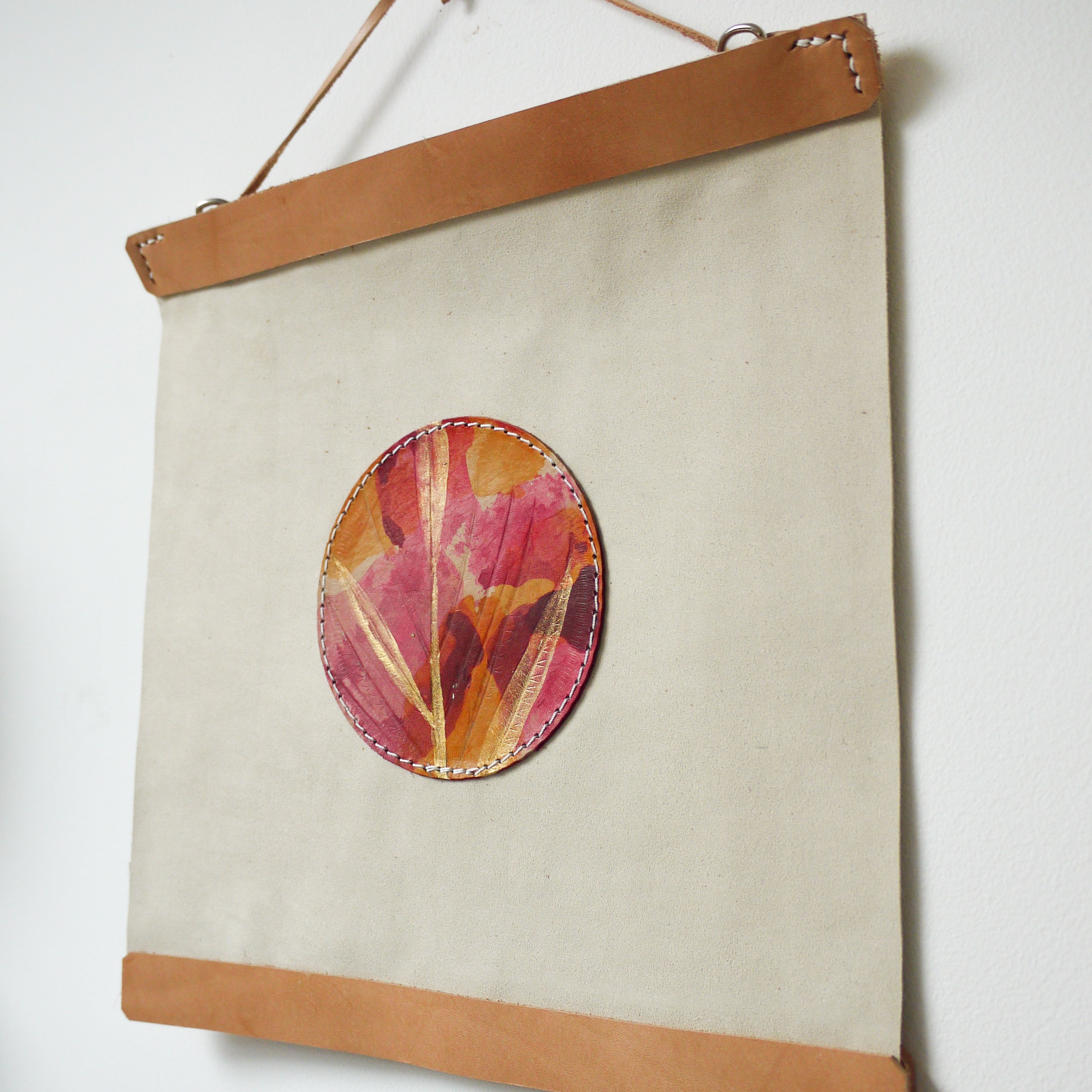 A beautiful and vibrant mix of pinks and oranges, with golden highlights, mounted on a beautifully soft suede backing.
